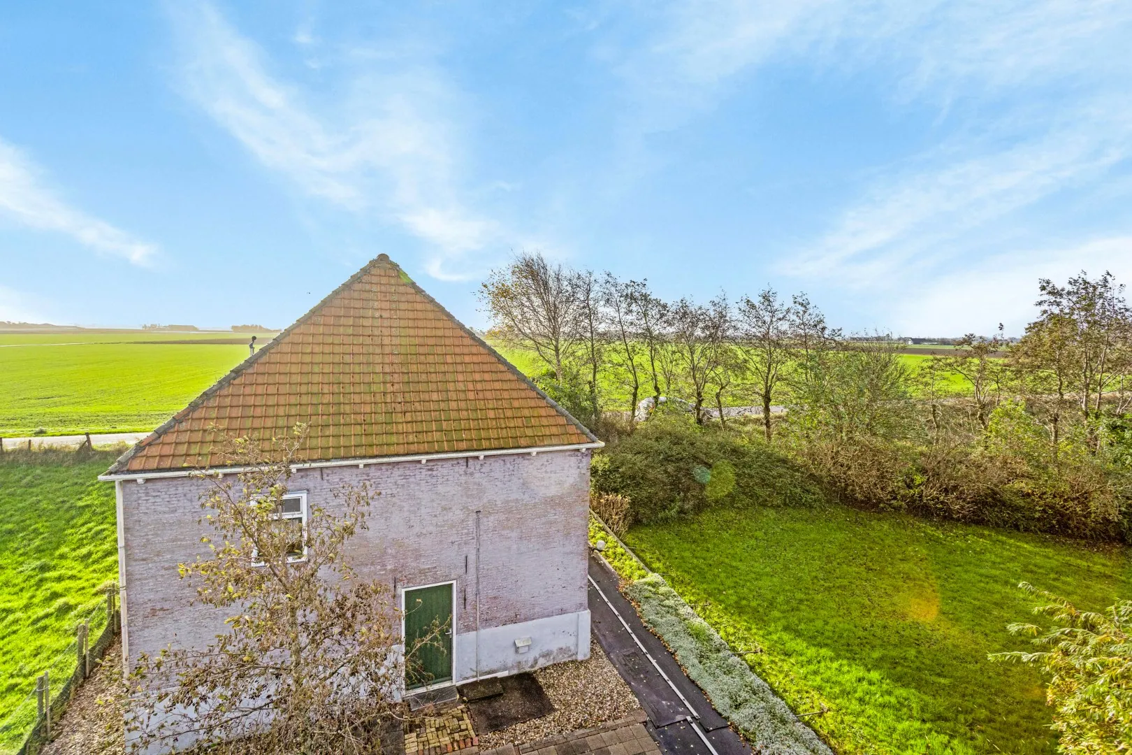 De woning is gelegen op de dijk zelf, waardoor u zowel aan de zuid- als noordzijde een vrij uitzicht heeft over de uitgestrekte landerijen. Dit is de perfecte plek om alle weersverschijnselen al van ver aan te zien komen – van wolkenpartijen tot de beroemde 'Rembrandtluchten'. Met een tuin die ideaal op het westen ligt, geniet u bovendien van een perfecte zonligging, met prachtige zonsondergangen als dagelijks schouwspel.