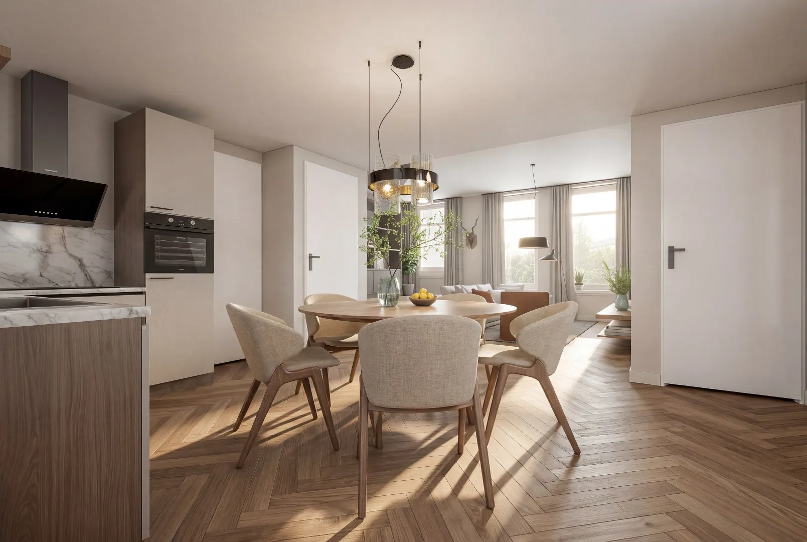 Om een indruk te geven van wat er mogelijk is, zijn achter in de presentatie visualisaties opgenomen. Deze laten zien hoe de woning eruit kan zien wanneer de afwerking is voltooid en de ruimtes zijn ingericht.