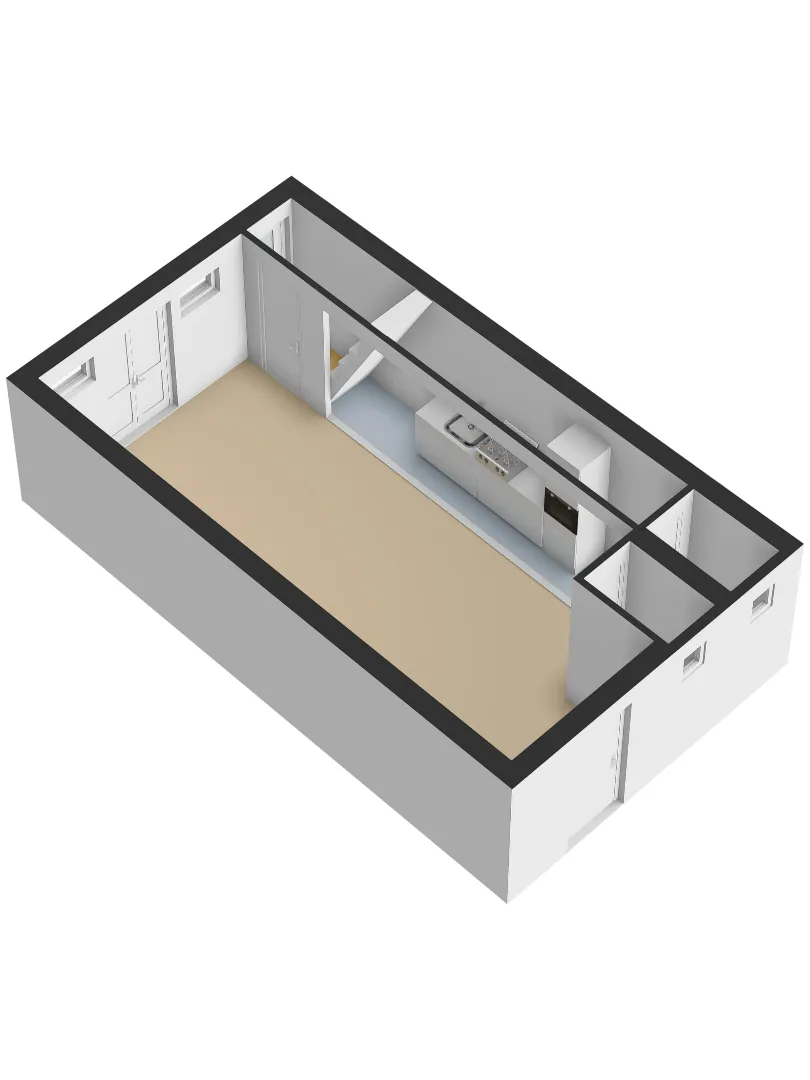 Het woongedeelte zelf is ruim en modern opgezet. Keuken, eetgedeelte en woonkamer lopen mooi in elkaar over en door de grote ramen valt er veel licht naar binnen. Het geheel voelt open en ruimtelijk aan.