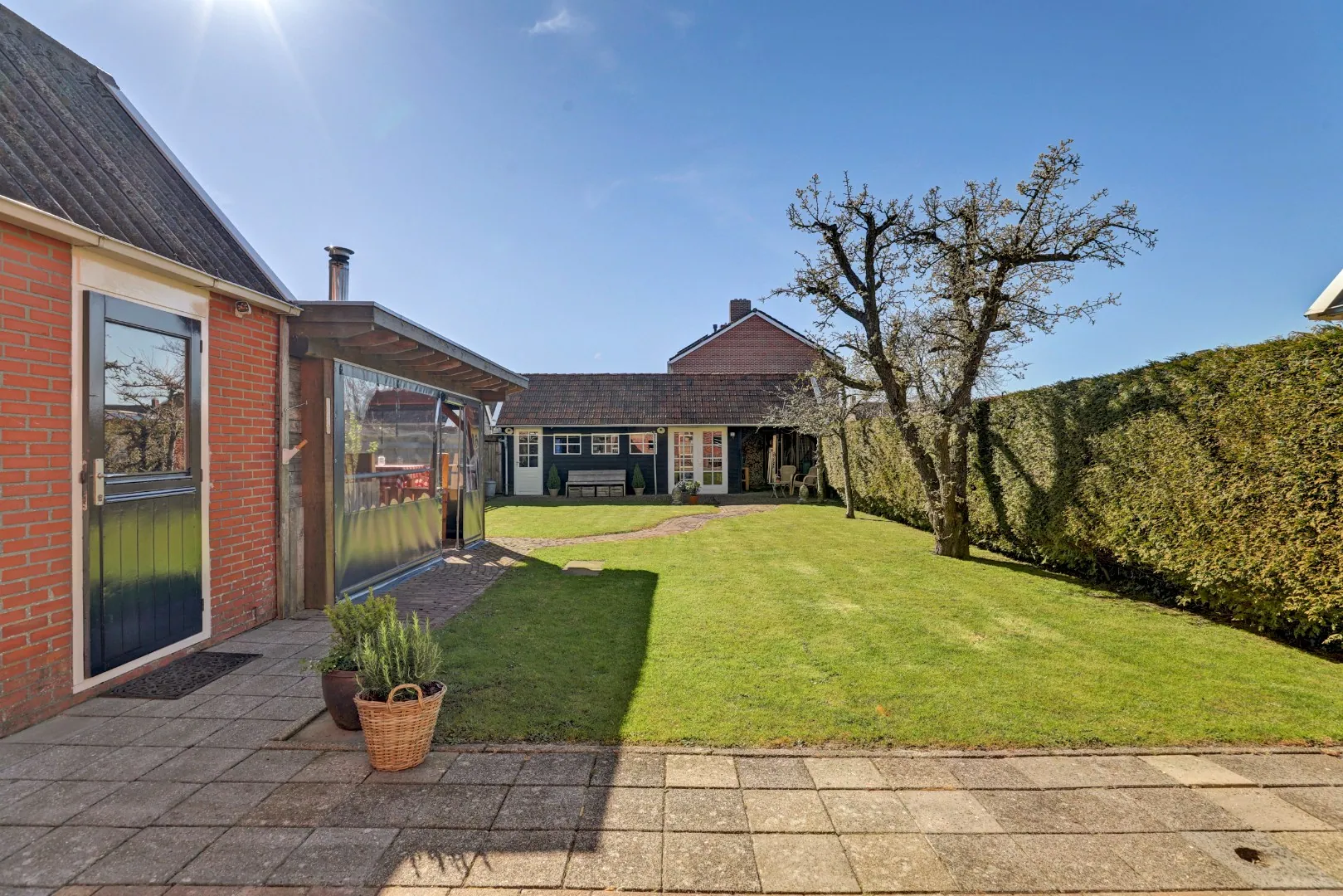 De tuin is een absoluut pluspunt. Hier geniet je de hele dag van de zon en is er ruimte in overvloed. Door de indeling met meerdere terrassen en zitplekken ontstaat er op ieder moment van de dag een fijne plek, of je nu kiest voor de zon of juist even de luwte opzoekt. Achterin de tuin staat een royaal bijgebouw met betonnen vloer en vliering, ideaal als hobbyruimte, werkplaats of voor extra opslag.