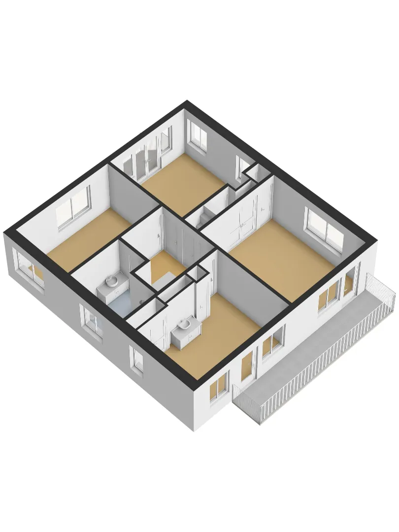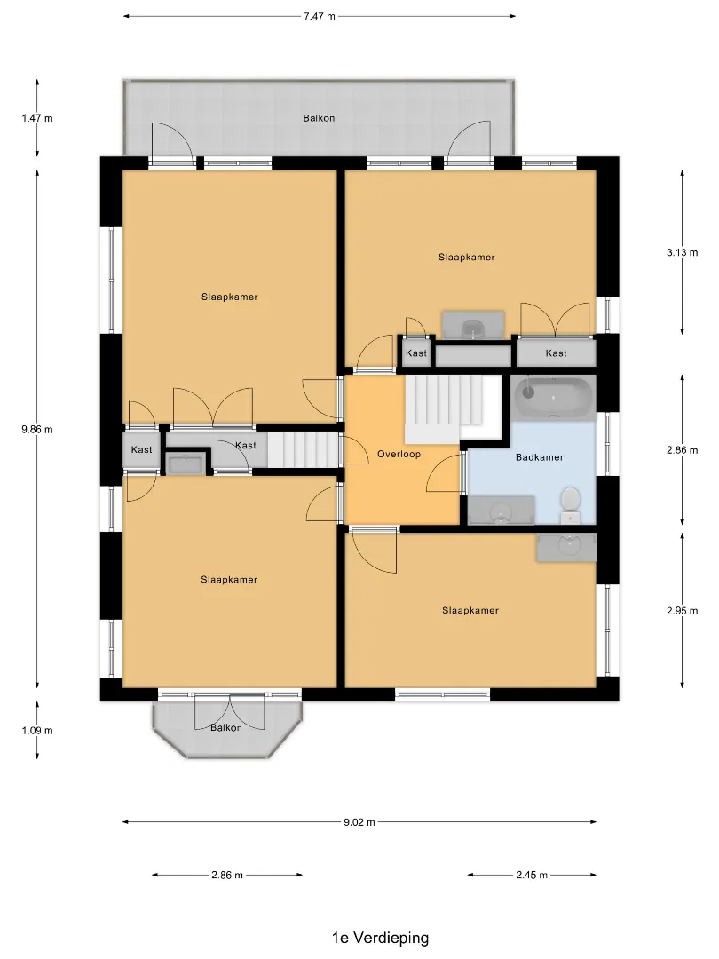 Op de eerste verdieping bevinden zich meerdere ruime slaapkamers. Bijzonder detail: rondom zijn er balkons die bereikbaar zijn via openslaande balkondeuren. ’s Morgens de deuren openzwaaien om de dag te beginnen of ’s avonds nog even buiten zitten in alle rust – het geeft deze verdieping een zeldzame allure. De badkamer is royaal van opzet en praktisch ingericht, met volop mogelijkheden om deze naar eigen stijl te moderniseren.