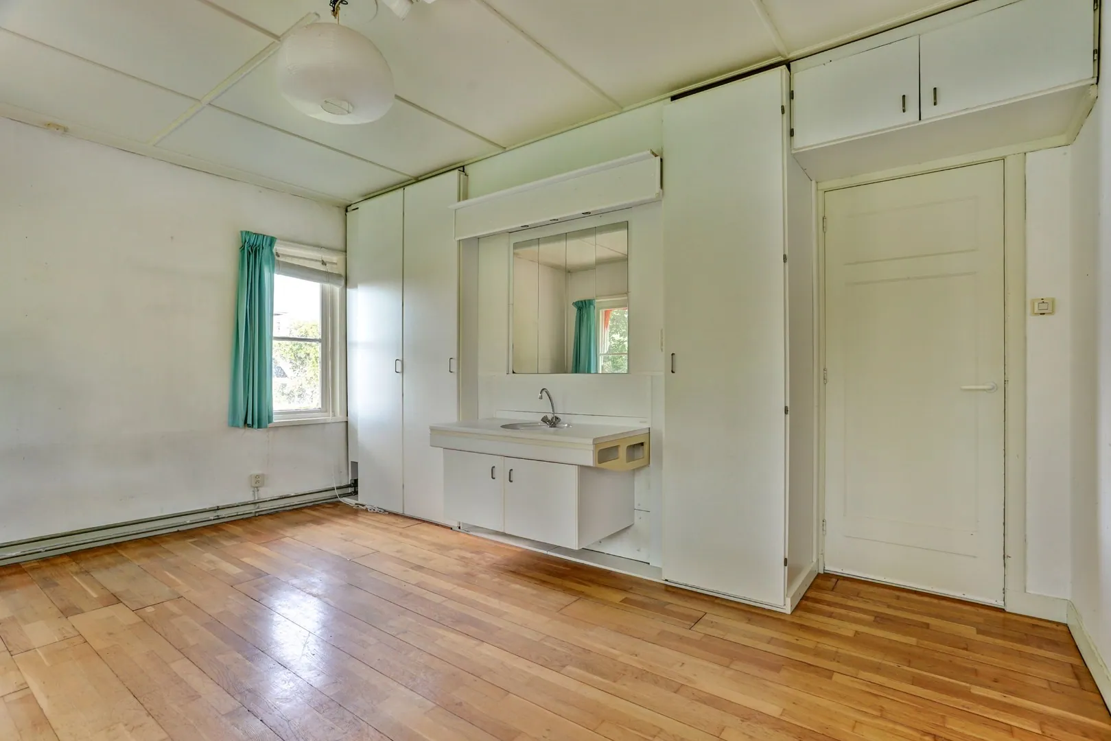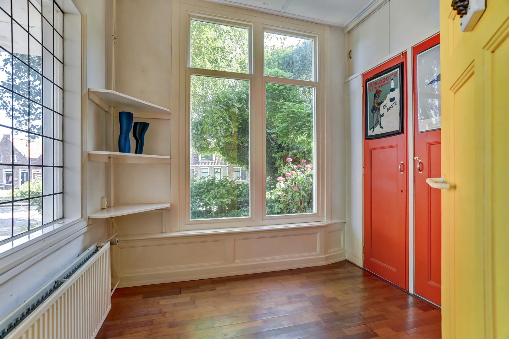 Aan de linkerzijde van de woning is een tweede entree, met een eigen klein halletje, die toegang biedt tot de ruimte waar vroeger de dorpsdokter zijn praktijk hield. Een plek die historie ademt en tegelijk volop mogelijkheden biedt voor vandaag: als kantoor, atelier, praktijkruimte of stijlvolle ontvangstruimte. Deze zelfstandige entree maakt het geheel extra functioneel en geeft het huis nog meer allure.