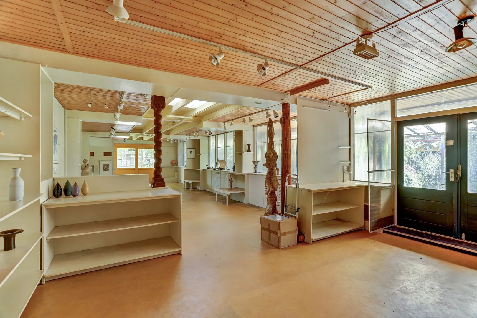 Grenzend aan de woning, maar met een geheel eigen karakter, bevindt zich de royale bedrijfsruimte die jarenlang dienst heeft gedaan als kunstgalerie (1976). Veel licht en een open indeling maken dit tot een inspirerende plek met talloze mogelijkheden. Of het nu gaat om een galerie, atelier, kantoor of een andere vorm van bedrijvigheid – de ruimte straalt dezelfde allure uit als het woonhuis zelf.