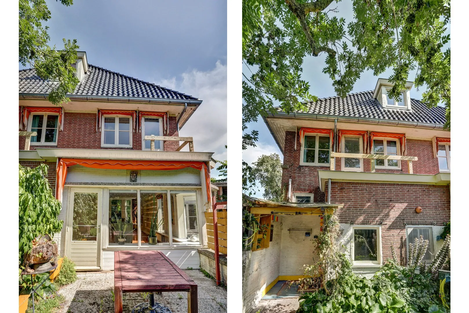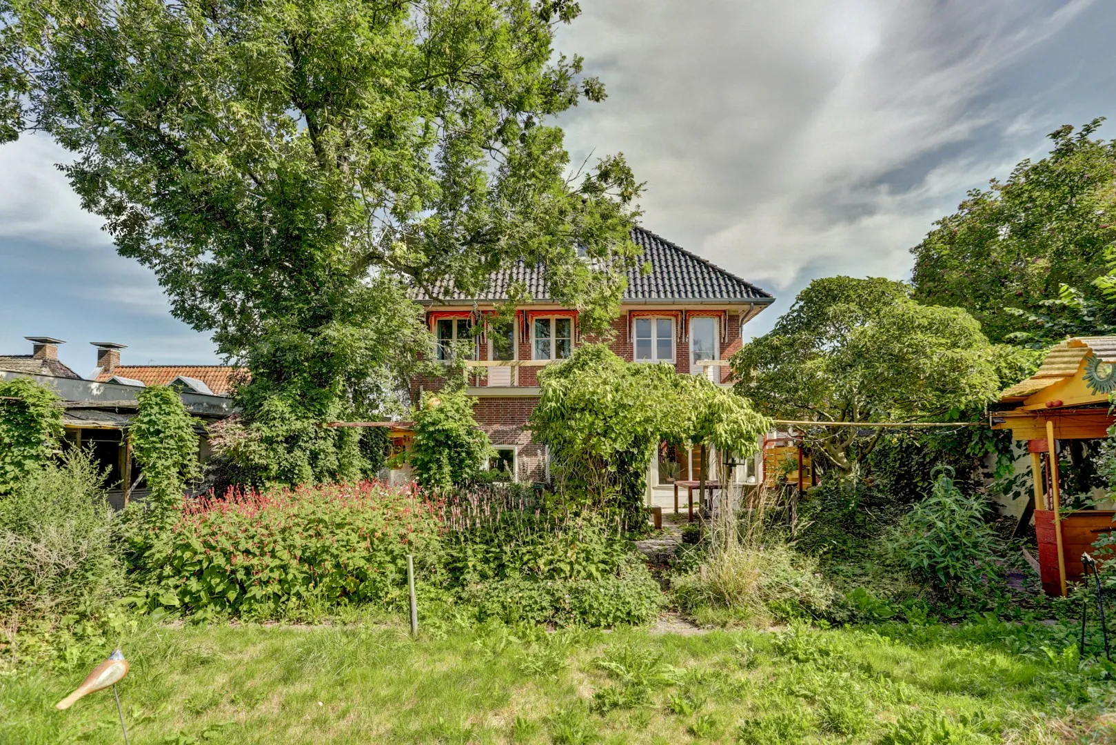 Vanuit de ruime bijkeuken van het woonhuis stap je de tuin in. Een groene buitenruimte met verschillende zitjes en volwassen beplanting, die inmiddels wat is teruggegroeid maar daardoor juist een weelderige indruk geeft. Hier proef je rust en privacy, met volop mogelijkheden om naar eigen wens opnieuw in te richten.