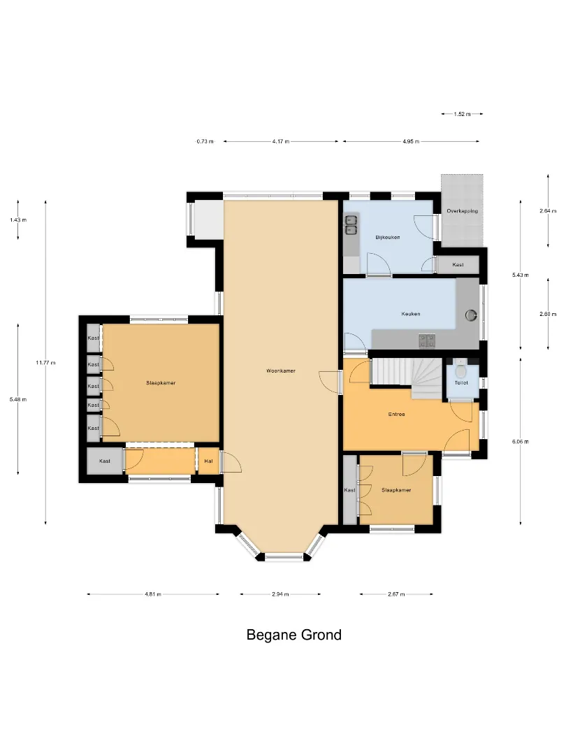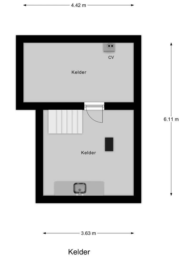 Aan de rechterzijde van de voorgevel bevindt zich de statige hoofdentree. Hier stap je een ruime ontvangsthal binnen waar de imposante trapopgang direct de toon zet. Onder deze trap ligt een kelder van gelijke omvang, volledig beloopbaar en ideaal om bijvoorbeeld een wijncollectie te bewaren.