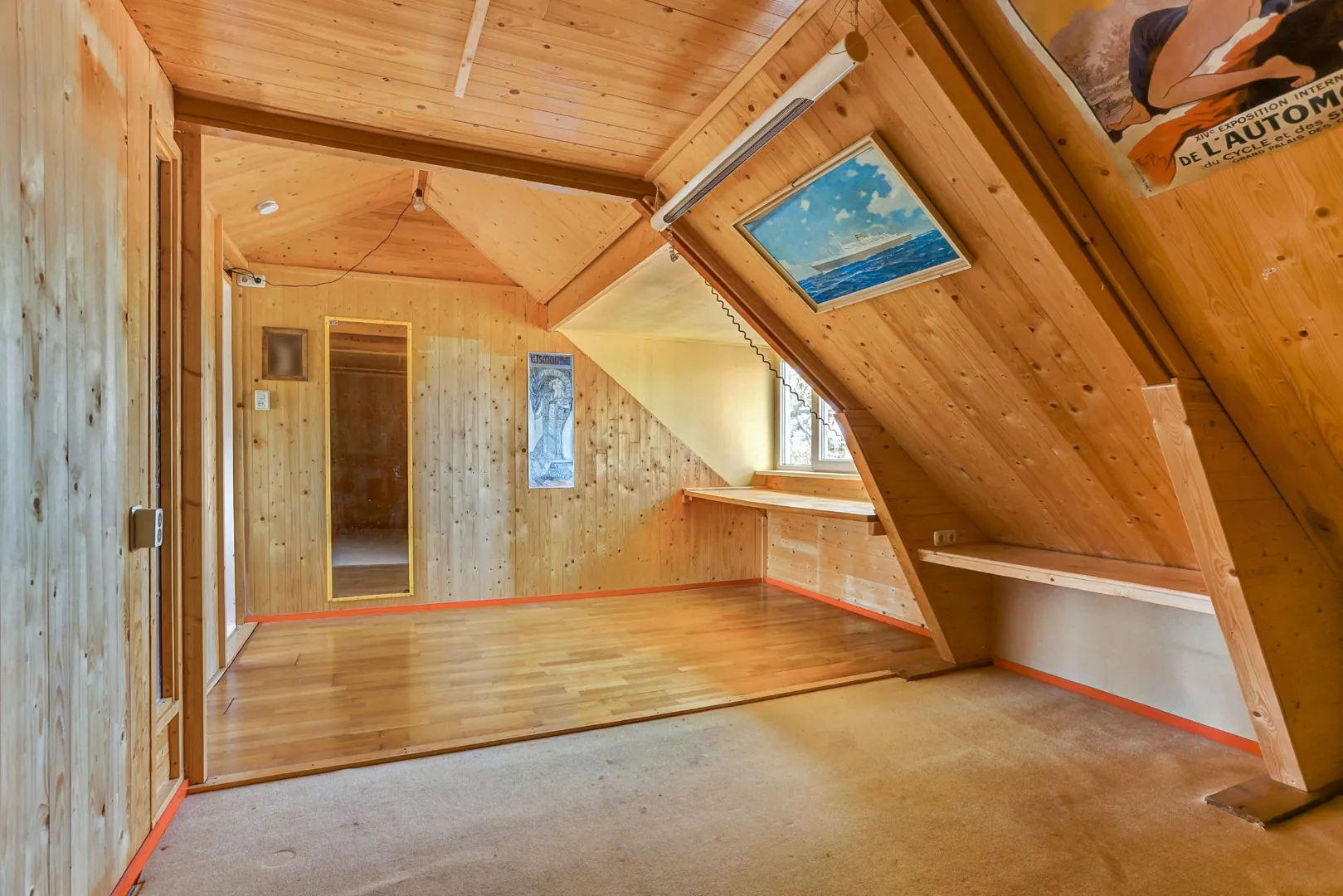 De bovenste verdieping is verrassend ruim en licht dankzij ramen en dakkapellen. Onder de karakteristieke houten spanten bevinden zich meerdere kamers die zich lenen als extra slaapkamers, een atelier of bibliotheek. Een verdieping die niet alleen extra woonruimte biedt, maar ook het historische karakter van het huis voelbaar maakt.